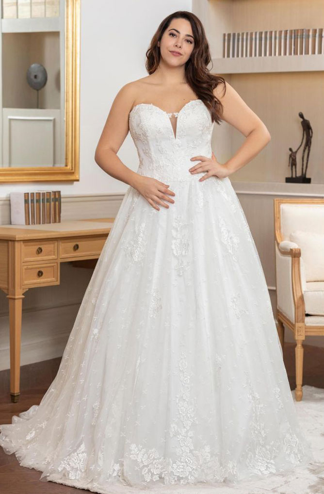 Nous proposons aussi des robes de mariage civil, ainsi que des créations sur mesure. Notre atelier de retouches intégré permet d’ajuster la coupe jusqu’à obtenir un tombé parfait. Nous prenons le temps d’accompagner chaque essayage. Nous présentons également une large sélection de robes de mariée grande taille et de robes de soirée grande taille, toujours pensées pour mettre en valeur chaque silhouette.